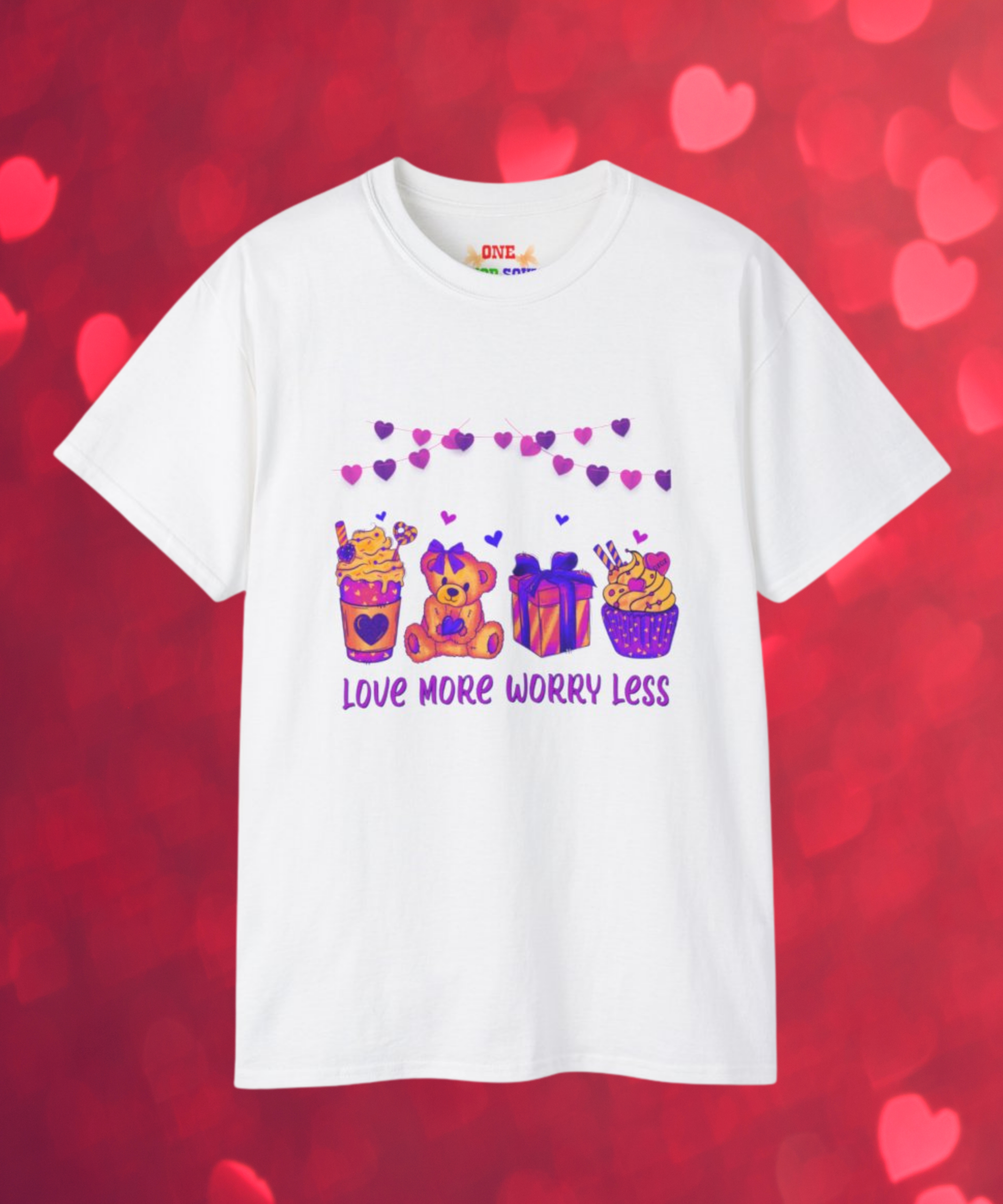 Soft, durable, and full of uplifting charm, the Love More Worry Less Unisex T Shirt adds warmth, comfort, and positivity to your everyday wardrobe.