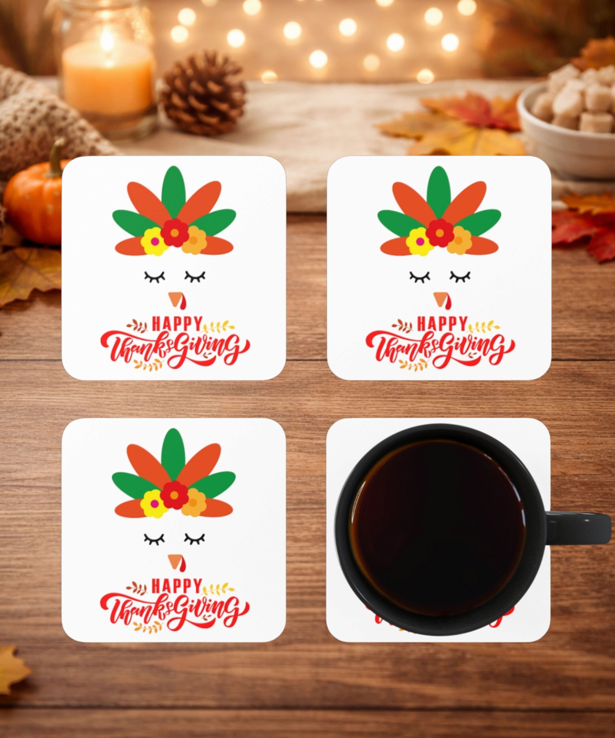 Thankful turkey coaster set designed to bring festive fall style and everyday protection to your table, the Thankful Turkey Coaster Set adds warmth and charm to seasonal decor. Featuring a cute turkey-themed design, each coaster is crafted with a durable high-gloss MDF top that looks beautiful while protecting surfaces from heat and moisture.